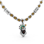 Unique tiger-eye style beads and geometric silver links around the chain, giving a perfect blend of tradition and modern aesthetics.