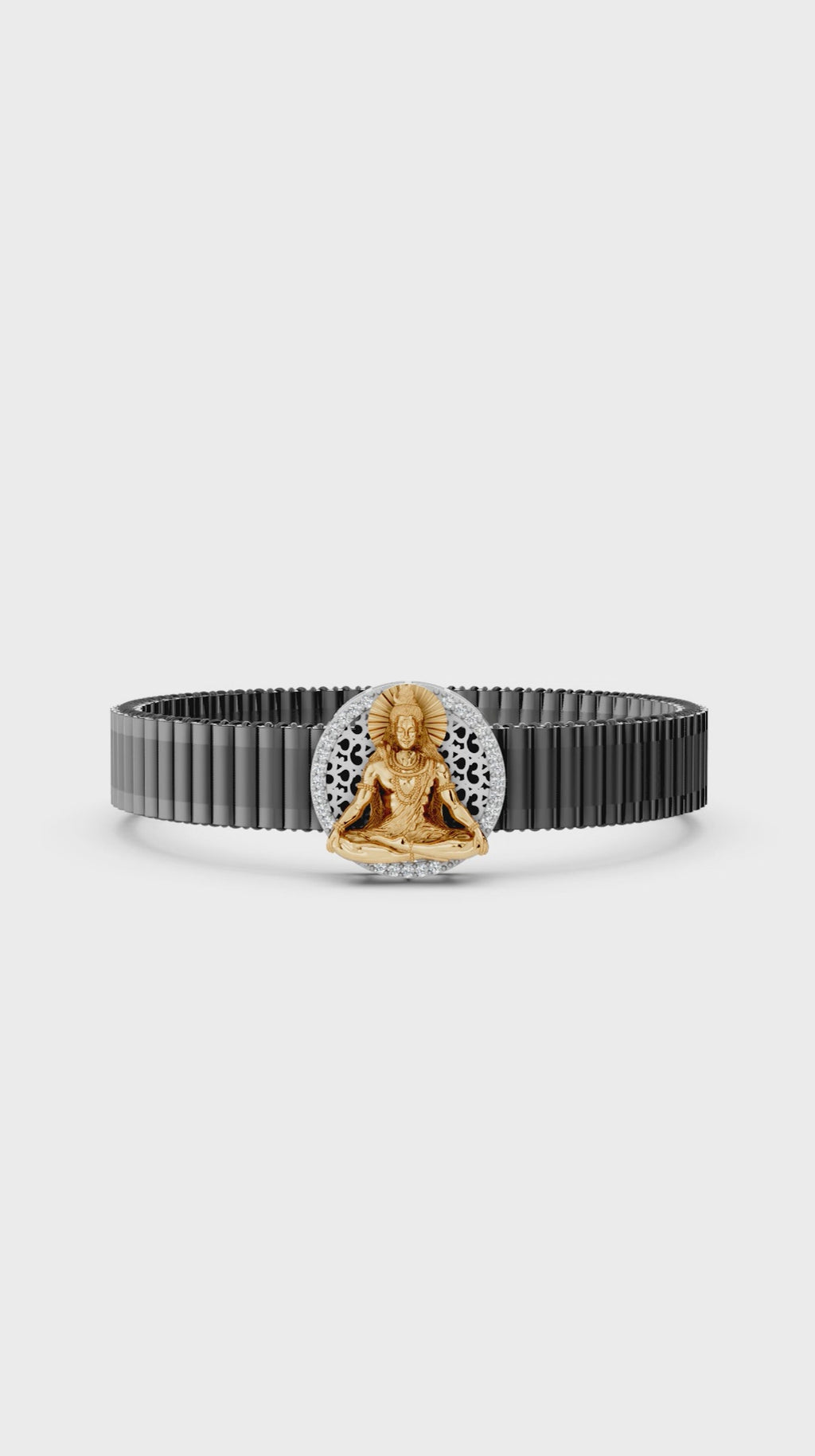 Honor spirituality and style with this exquisitely crafted Divine Mahadev Meditation Bracelet, designed for those who seek elegance with a powerful spiritual connection. The centerpiece features a finely detailed Mahadev idol in a serene meditative pose, complemented by an intricately carved circular frame for a divine aesthetic.